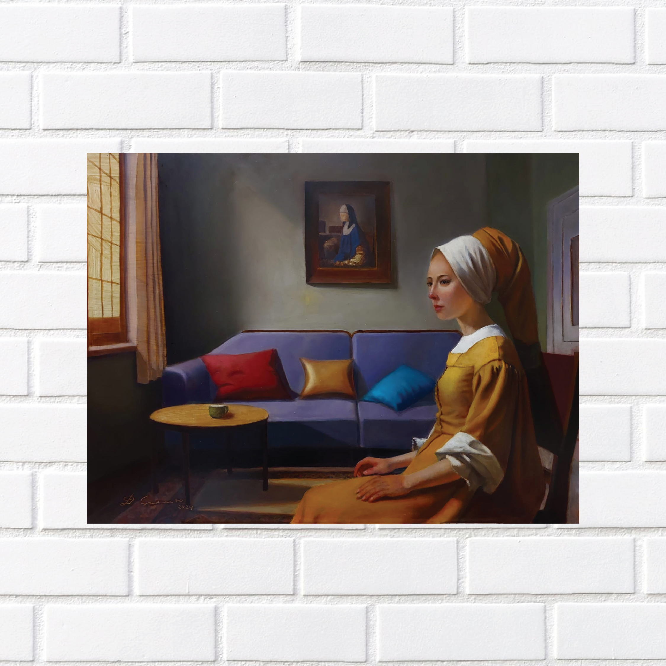 Keterkaitan sejarah antara negara Indonesia dgn Belanda dan reinterpretasi gaya lukisan karya2 pelukis Belanda Johannes Vermeer (1632-1675) yg dalam karya2 figurativenya sering menempatkan subyek sosok perempuan muda didepan jendela yg terbuka menimbulkan inspirasi saya untuk membuat karya2 dgn gaya tersebut. Figur2 dihadapan jendela terasa relevan dgn figur2 jaman sekarang yg kesehariannya sangat sering berada didepan jendela2 (Windows) computer untuk aktifitasnya.