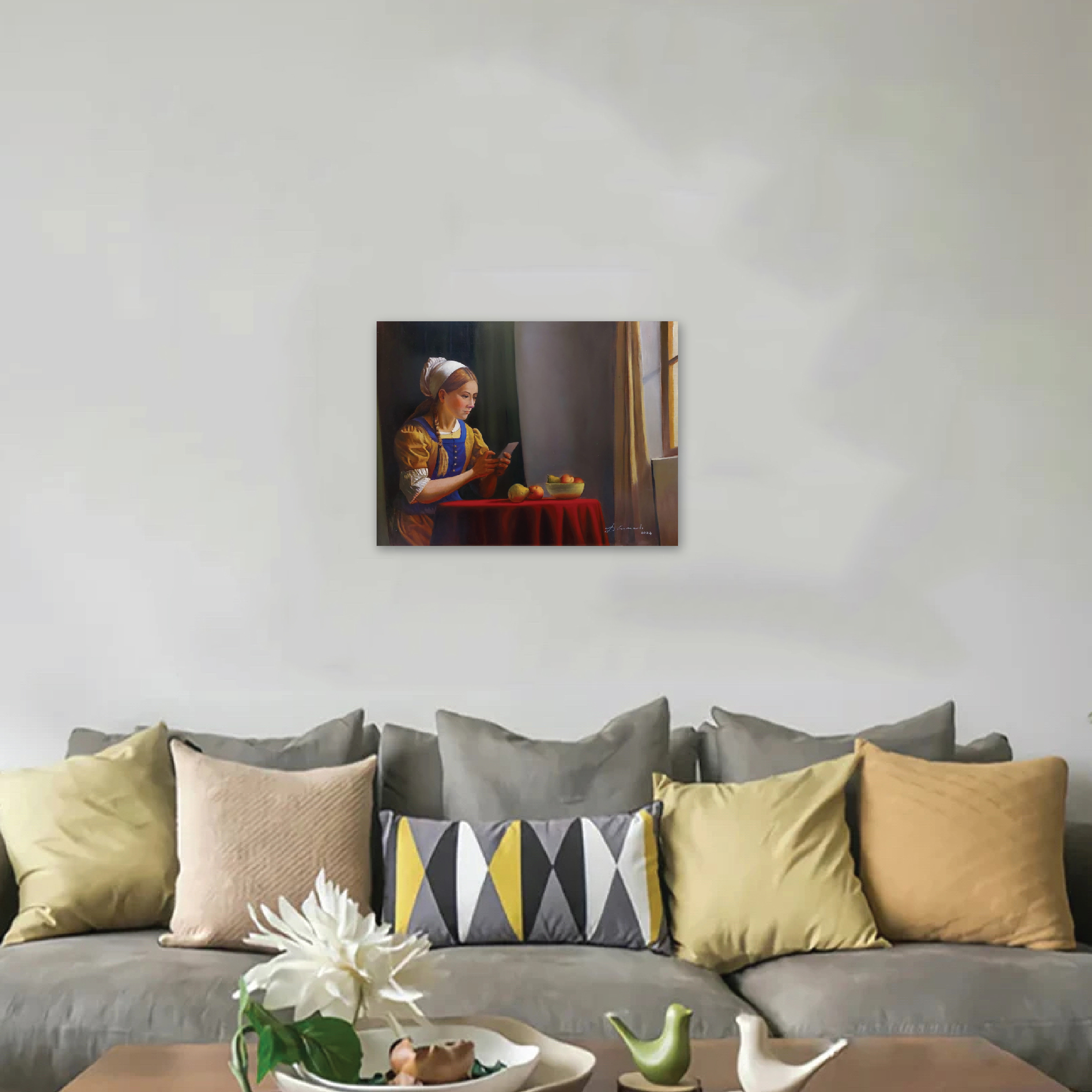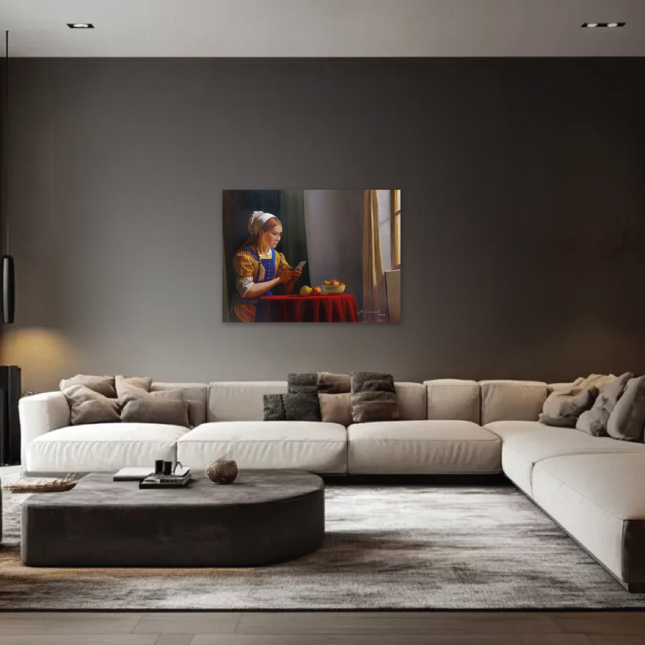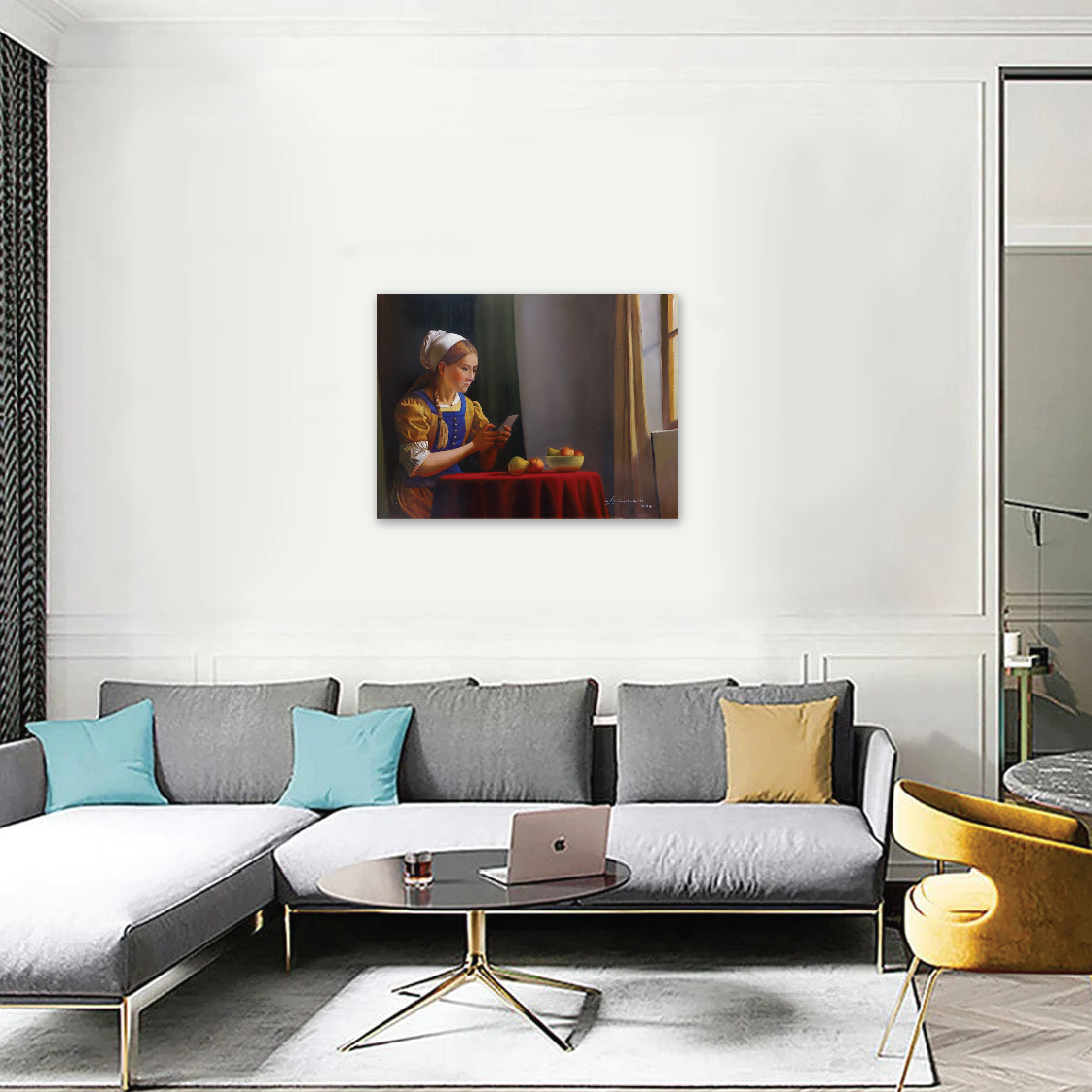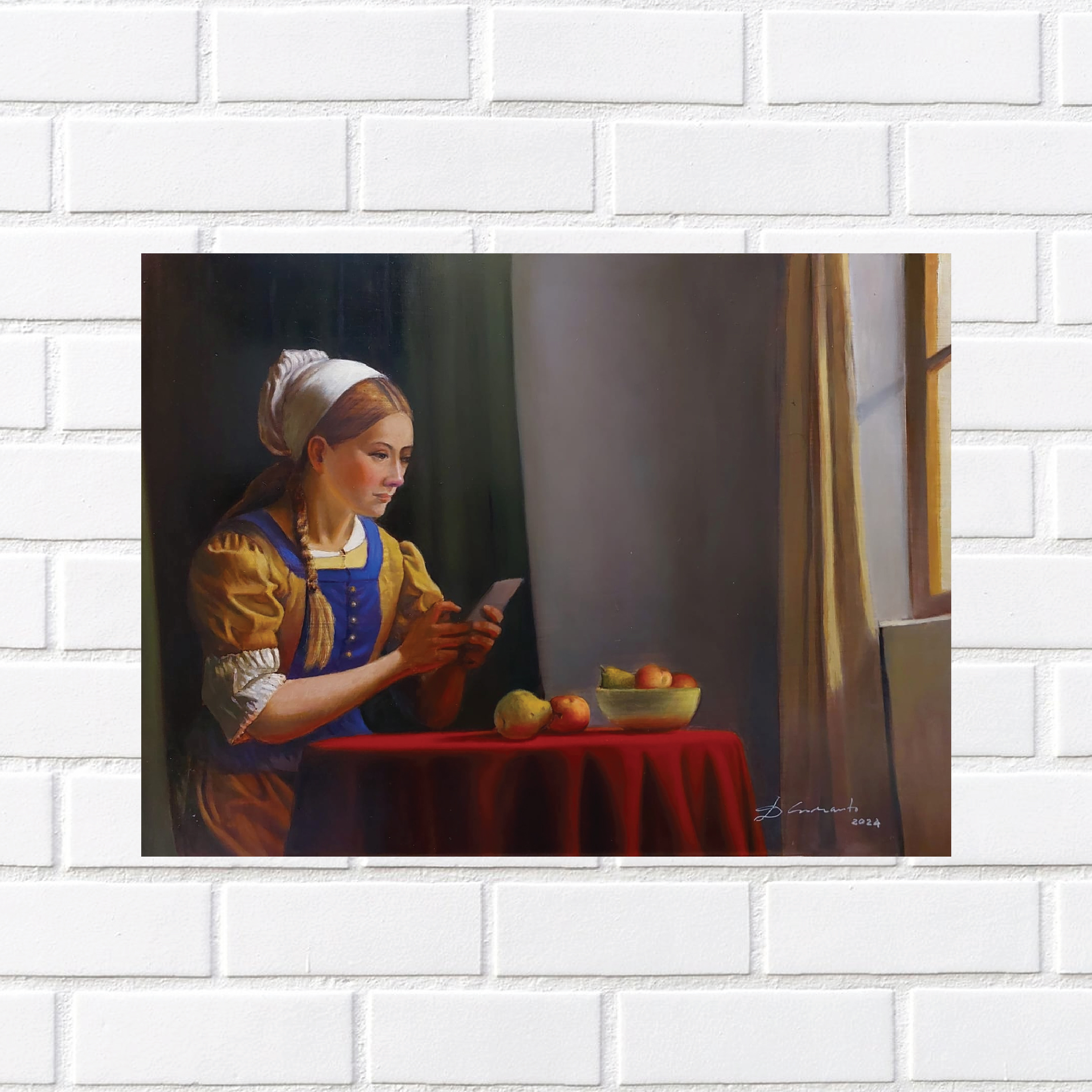 Keterkaitan sejarah antara negara Indonesia dgn Belanda dan reinterpretasi gaya lukisan karya2 pelukis Belanda Johannes Vermeer (1632-1675) yg dalam karya2 figurativenya sering menempatkan subyek sosok perempuan muda didepan jendela yg terbuka menimbulkan inspirasi saya untuk membuat karya2 dgn gaya tersebut. Figur2 dihadapan jendela terasa relevan dgn figur2 jaman sekarang yg kesehariannya sangat sering berada didepan jendela2 (Windows) computer untuk aktifitasnya.